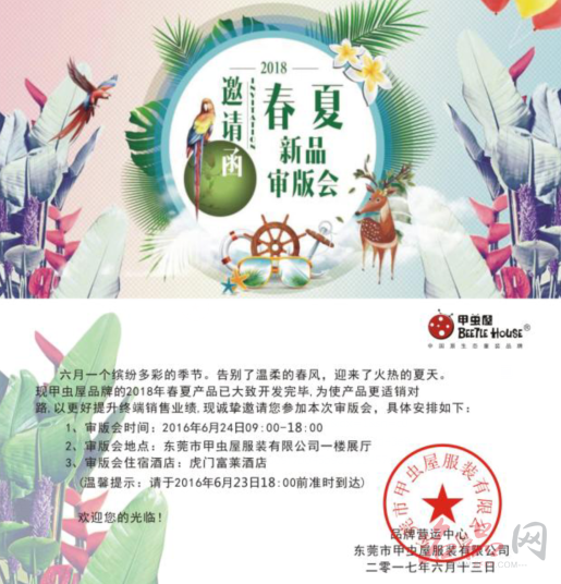 2.审版会地点:东莞市甲虫屋服装有限公司一楼展厅