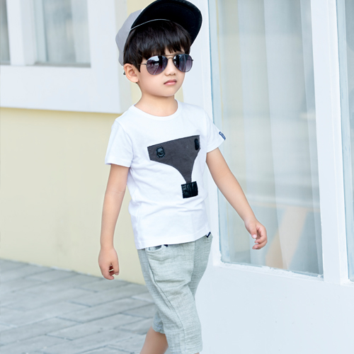 可爱图案的白T恤搭配灰色七分裤,绝对是夏季最不会错的搭配哦~这样的搭配,能让宝宝们尽情的释放活力,感受愉悦的时光!