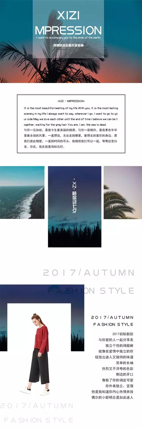 开口长衫—个性、自我,爱你就要给你更好的西子一直用心做美衣,我们认为新一代女性对于服装的追求远远提高,服装更多的是带来自信、魅力,西子女装为你的生活添彩。
