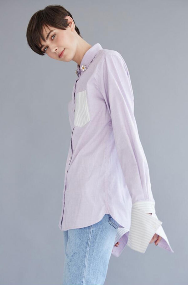 你是否喜欢上这件香芋色的衬衫?它出自PINBLACK,一个原创的设计品牌,淘宝企业店有售,欢迎仙女们选购!~主页菌只能帮你到这啦,要不要入手就看你咯!