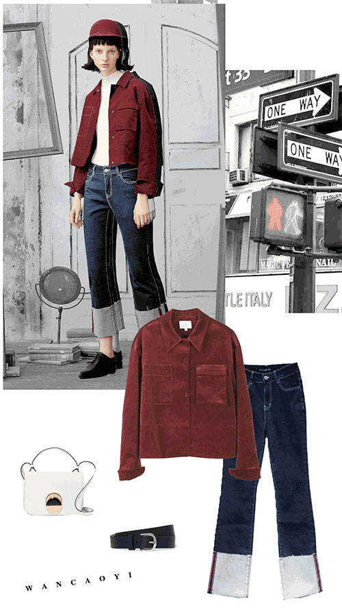 复古灯芯绒+摩登的酒红,灯芯绒棒球衫短外套,在渐渐清冽的秋日,精神气十足。