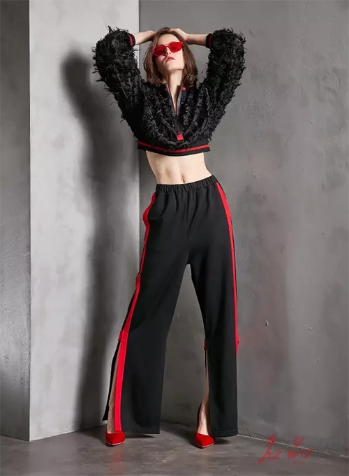 作为很百搭的高级定制外套,轻盈奢华,面料飘逸柔美,上身有舞动灵魂的视觉呈现效果,搭配今年大热的校裤款休闲裤,撞色拼接红与黑的质感碰撞出激情的火花,为你保暖时尚这个秋冬。