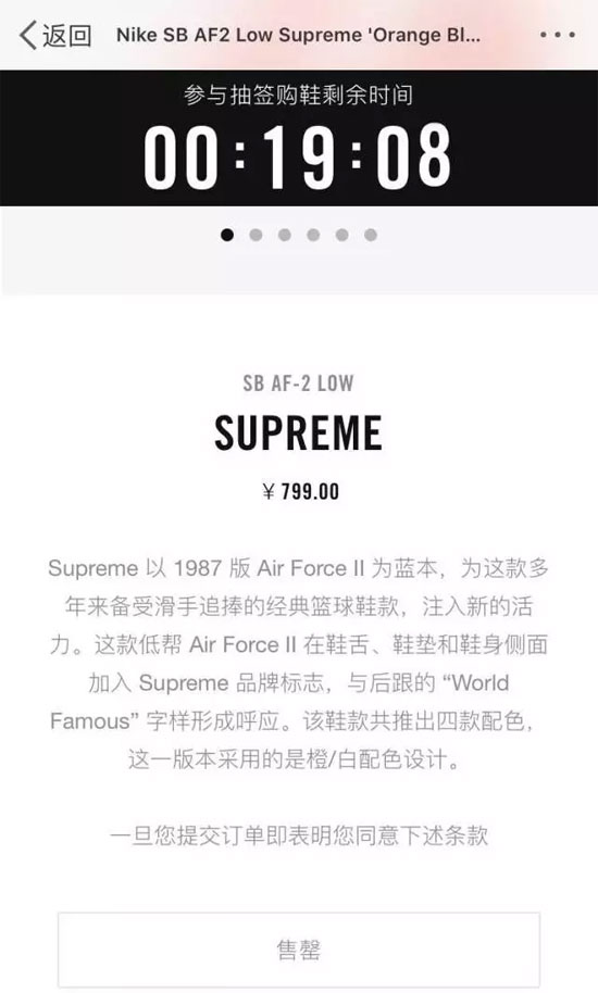 所谓的抽签链接点进去的页面却直接显示售罄,令消费者怀疑Nike此次发售有黑幕