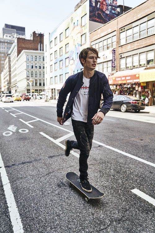 知名模特Nate Morgan在纽约街头尽情享受用滑板追逐黄色taxi的乐趣,品牌继续围绕运动,街头风等一贯的主题。