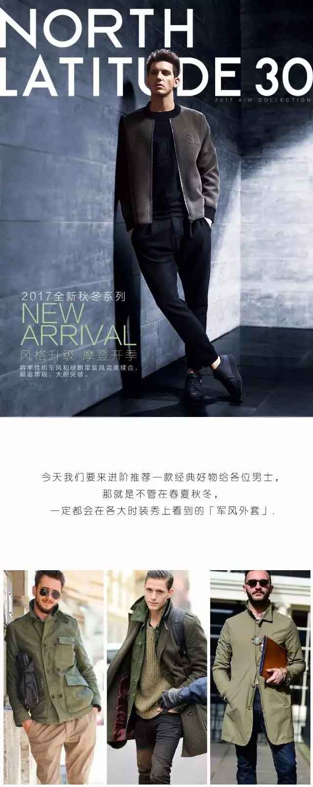 北纬30,2017全新秋冬系列出来了,管你爱不爱,总之看到的MM也会忍不住要下手给男朋友买上两套,这样搭配的军风套装,穿在身上谁人不爱?个性,时尚且舒服,彰显男人本色。
