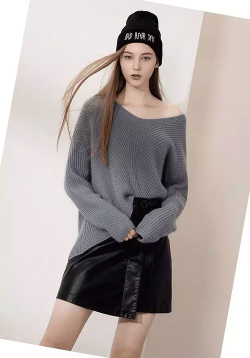 舒适兔毛的绒线材质的毛衫,采用前段后长的设计,给冬日的单品带来一些阳光的色彩:搭配半皮裙,个性但不夸张,彰显时尚休闲气质。