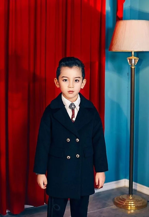 这款黑色大衣也同样合适男孩穿着,简单大气的版型搭配上奢华的钻扣,举手投足间流露出贵族风范,任谁穿上都会显的气场十足。