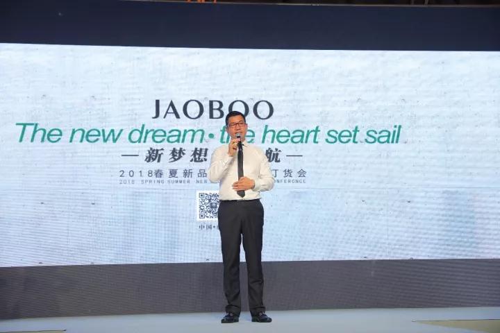 乔帛集团董事长开幕致词,周总首先表示了对JAOBOO加盟商的热烈欢迎,感谢大家对JAOBOO的支持及信任,并借这个美好的日子和大家简单分享了一下公司的发展目标。致辞中隆重介绍了JAOBOO公司的战略合作伙伴深圳咨询公司虹歌集团,合作期间虹歌集团会帮助JAOBOO如何把专卖店做好、把运营做好,同时会把四大系统:视觉系统、运营系统、督导系统、整个VIP客服系统一点一滴的导入到每个专卖店里,同时培训每个店长、店员如何提升专业技能。