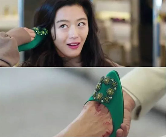 当然,KOL的“带货”影响也是不可忽视的一点。前几年随着KOL的大规模崛起,方扣平底鞋作为“网红标配”快速席卷了中国的社交网络。而全智贤在近期热播韩剧《蓝色大海的传说》中穿着的一双绿色方扣平底鞋也成为热议的焦点。