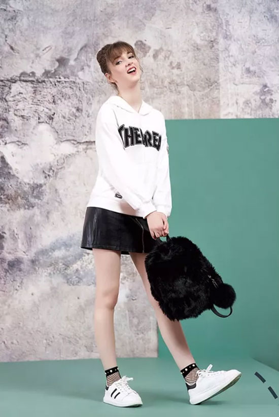 回想学生时期穿着的连帽卫衣与短裙,是不是觉得青春爆棚?其实现在也可以这么穿。字母图案给人经典的印象,所以搭配呢大衣或棒球外套都是很棒的方法。