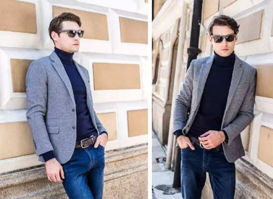 很多男士认为穿高领毛衣会显得脖子短,甚至都没脖子了。但高领毛衣的领型高度也有很多款,有些是薄款中等长度的,是适合脖子不够修长的男士穿着的。如果能再搭配一件修身的单西,简直不能再帅啦!