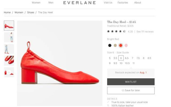 Everlane很少通过传统渠道释放广告,它的主要广告阵地是社交网络,主要通过网红营销产品。以至于每一季爆款,每个博主人手一件,而且绝对一上官网就断货,需要添加到waitlist。
