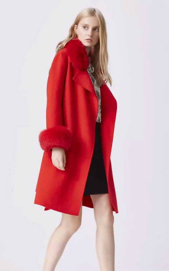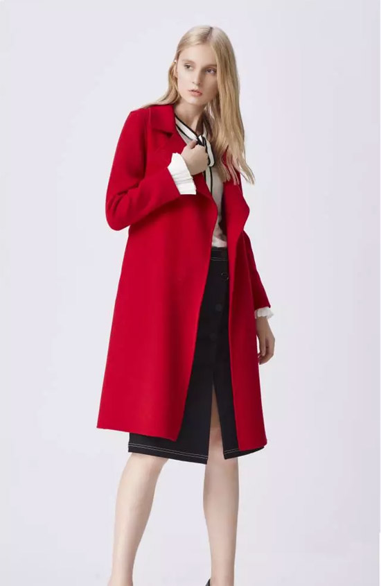 经典的基础款红色大衣,适合结婚等喜庆的日子穿着,在冬季更加温暖。