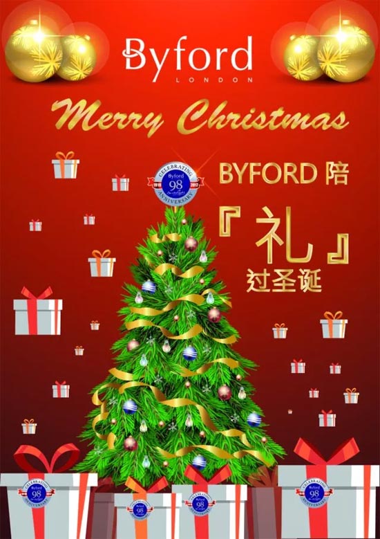 门店:指定Byford门店。日期:12月8-31日。优惠:1. 内外衣特价。2. 折满送电子券。另外,在15-31/12有限时大放送,消费折实每满2388元可获BYFORD圣诞盒装袜子一份,送完即止~