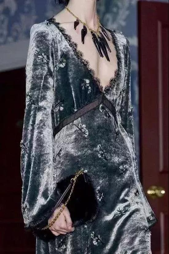 复古高贵的丝绒在今年是妥妥的承包了各大秀场,手感丝滑、柔软亲肤的高级面料,具备光泽感和垂坠感,自带奢华高贵的质感,穿起来有一种华丽的优雅以及慵懒的性感,妥妥的“看起来很贵”!