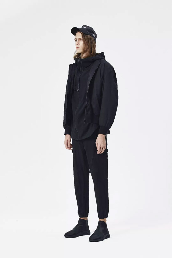 运动夹克塑造运动休闲风,针织罗文袖口增加舒适感,防水功能性面料增加未来感, 这一单品层搭时则以黑白色或中性色彩为主。后背的电脑绣花工艺为整体造型点睛,前片的纯色调和后片的重工刺绣形成视觉上反差,是春夏街头潮流造型不可或缺的单品。