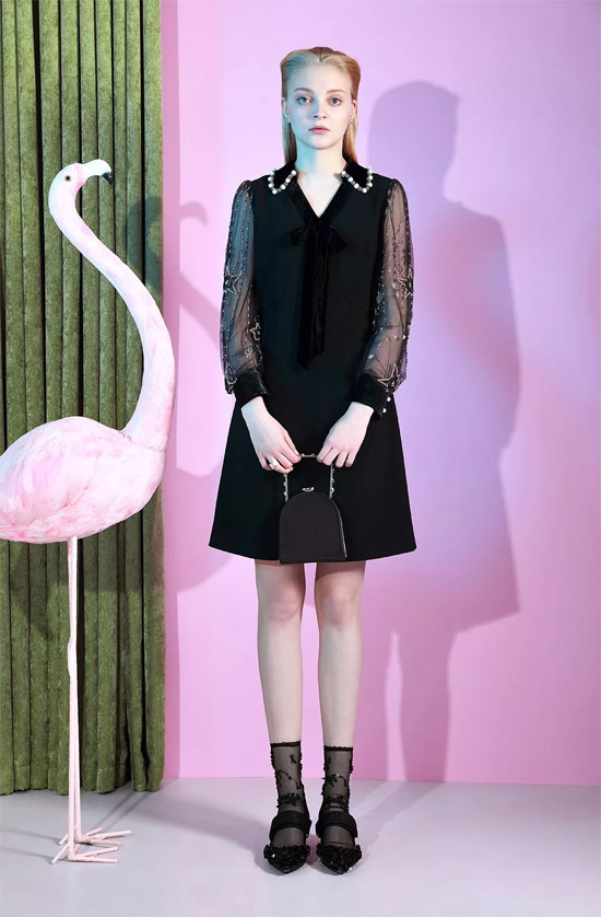 袖口轻盈网纱配以手工钉珠点缀,柔美飘逸,蝴蝶结极佳的展示独特了女性魅力。