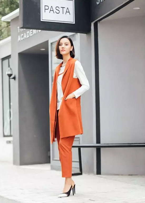 在温暖的春日里,穿一件肉桂色马甲出门,温暖加温暖,变作了热情。让你吸睛度十足,打破常规的方角夹圈,五金吊饰局部装饰,精致、美观,一件简约不简单的马甲,升温你的春日。