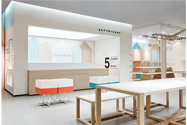 RIGI希望营造一种近似家的感觉,一种信任的氛围,一个干净、整洁、有幸福感的场所,而不是一个冷冰冰的只讲效率的商业空间。当然作为快销品牌,RIGI在设计中依然注重陈列的效率,同时也刻意的把握色彩和材质,避免过于温馨而失去了商业空间那种特定的吸引力。在空间分区上,除了成组团的多系列服装区和饰品区,RIGI策略性地开辟了会员区和儿童体验区。