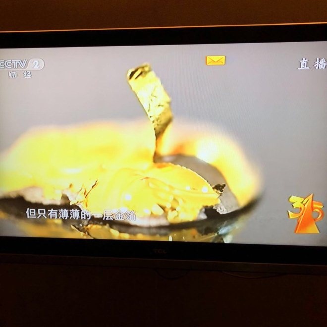 随后记者来到地质大学珠宝学院的实验室对其进行成分分析,分离后得到了玉片和薄薄一片金箔胶片,经过秤中,金箔仅有0.05-0.1克。