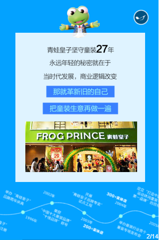 “青蛙皇子”品牌频出新招,演绎着中国童服界的传奇。自2005年品牌专卖体系运作以来,“青蛙皇子”品牌专卖网点遍布全国大中城市,至今网点达1500多家,逐步建立和完善起“青蛙皇子”品牌终端专卖体系,品牌知名度及影响力也得到进一步提升,被誉为“中国童装最具影响力的品牌”之一。