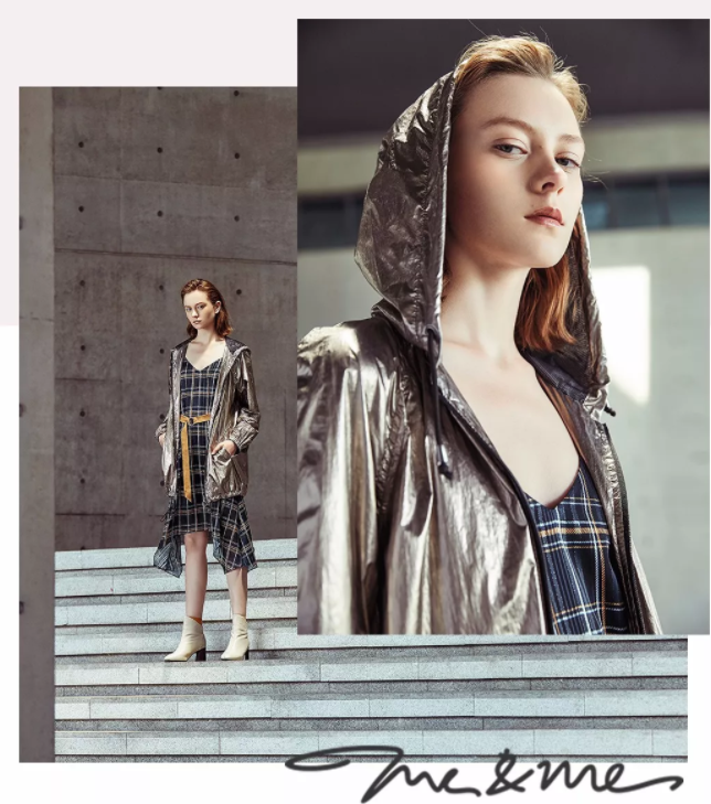 前门襟亚银色圆环四合扣的运用增强了整件衣服的俏皮度