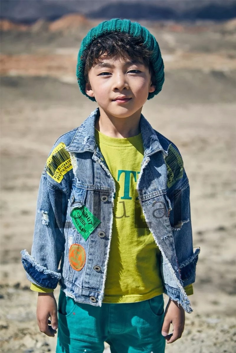 套上彩色贴布的牛仔外套