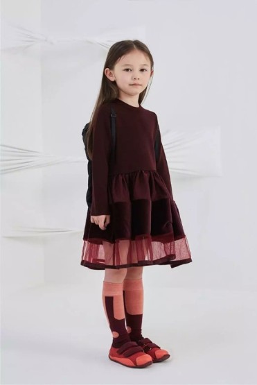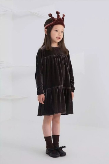 传统的经典面料,选用桑蚕丝和黏胶纤维,优雅的绒面和丝质的垂感自带高贵属性,属于孩子们的宽松趣味版型也能穿出轻巧日常礼服感。
