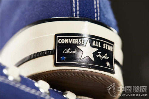 与此前两次联名款相比,除了高帮、材质的区别外,这次新品的用上了偏紫色的一种蓝色。鞋身两面采用不同的蓝紫色,带有匡威 logo 的一面颜色更深些。
