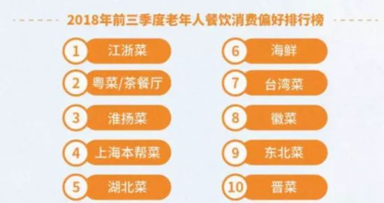 调查结果显示,江浙菜、粤菜与淮扬菜分列银发族消费偏好的前三甲,上海菜、湖北菜与海鲜也备受欢迎。从菜系上看,清淡的南方菜相对更合中老年人的胃口。而以重口味著称的川湘、贵州菜系则更受年轻人的喜爱,银发族在此方面的“战斗力”大大减弱。