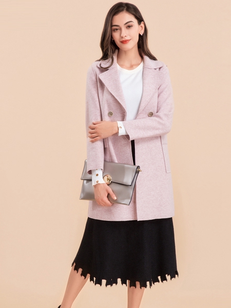女性心中总有一个少女梦,粉色恰恰满足了这点。粉粉嫩嫩的淑女日记大衣,搭配白色毛衣,显出好气质。再穿上黑色毛边半裙,成熟的意味尽显,手拎银色小包,分分钟可以出勤。