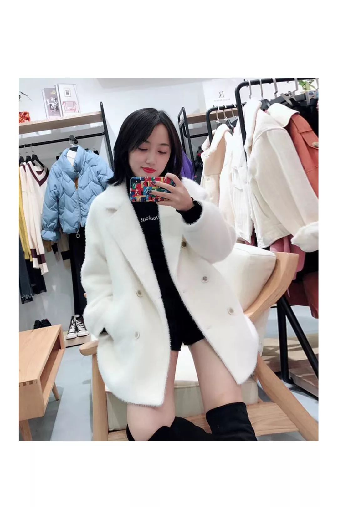 优点 是防皱耐磨,手感柔软,高雅挺括,富有弹性,保暖性强。