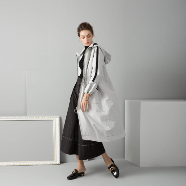 春季是穿风衣的好时节,彩知丽这一件淡灰色的运动风风衣展示出穿搭的低调高贵感,也更将春季的运动舒适感融入进去,让你尽情体会春天的自由烂漫感。搭配黑色的内搭就很经典耐看了。