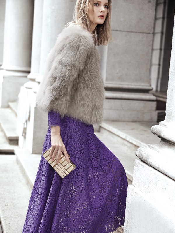 今年一直流行的紫色在这件连衣裙上彰显出了十足的高贵感。搭配上赫梵茜网纱印花的面料,更是让穿搭多了浪漫甜美感。搭配上一件淡灰色的皮草上衣,真是贵气十足呢。这么多的裙装穿搭你喜欢哪一套呢?快去赫梵茜看一看吧。