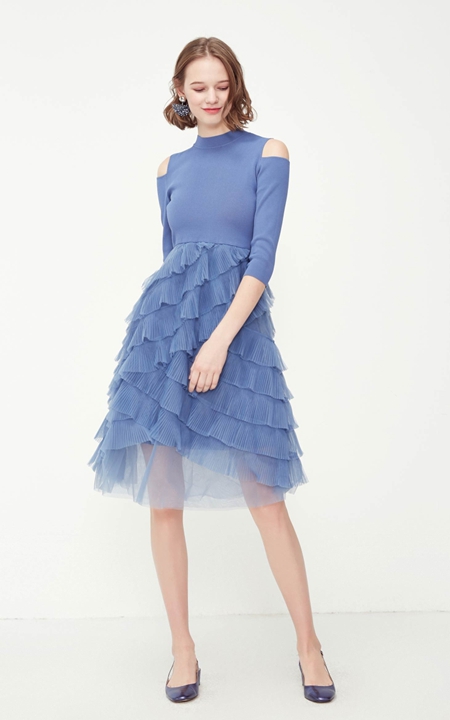 一袭裙装,不染风尘。深蓝色裙装,上半身以微露肩的设计,打造调皮的意趣。下半身层层叠加的蓬蓬裙,赋予了裙身整体浪漫之气。秋之恋裙装修饰、打造、装点女性,适合装扮自我。