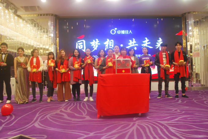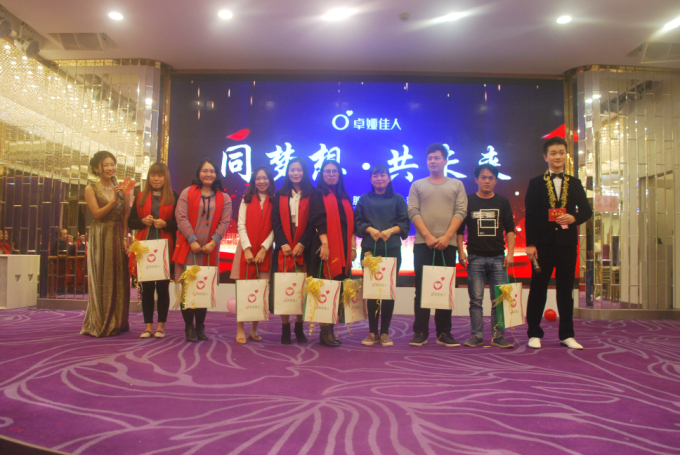 旺狗辞旧岁,金猪迎新年!载满收获和喜悦的狗年圆满落幕,充满希望和收获的猪年已经来到。为展现公司日新月异、蓬勃发展的良好风貌,为丰富员工们的生活,增进大家的友谊、增强公司凝聚力,2019年1月10日深圳市卓娅佳人服饰有限公司“同梦想*共未来”《卓娅佳人2019年迎春晚会》在深圳新宝城大酒店圆满落幕!参与本次晚会的有深圳市卓娅佳人服饰有限公司全体人员领导家属以及分公司代理商,大家欢聚一堂,共度一个激情难忘的夜晚。
