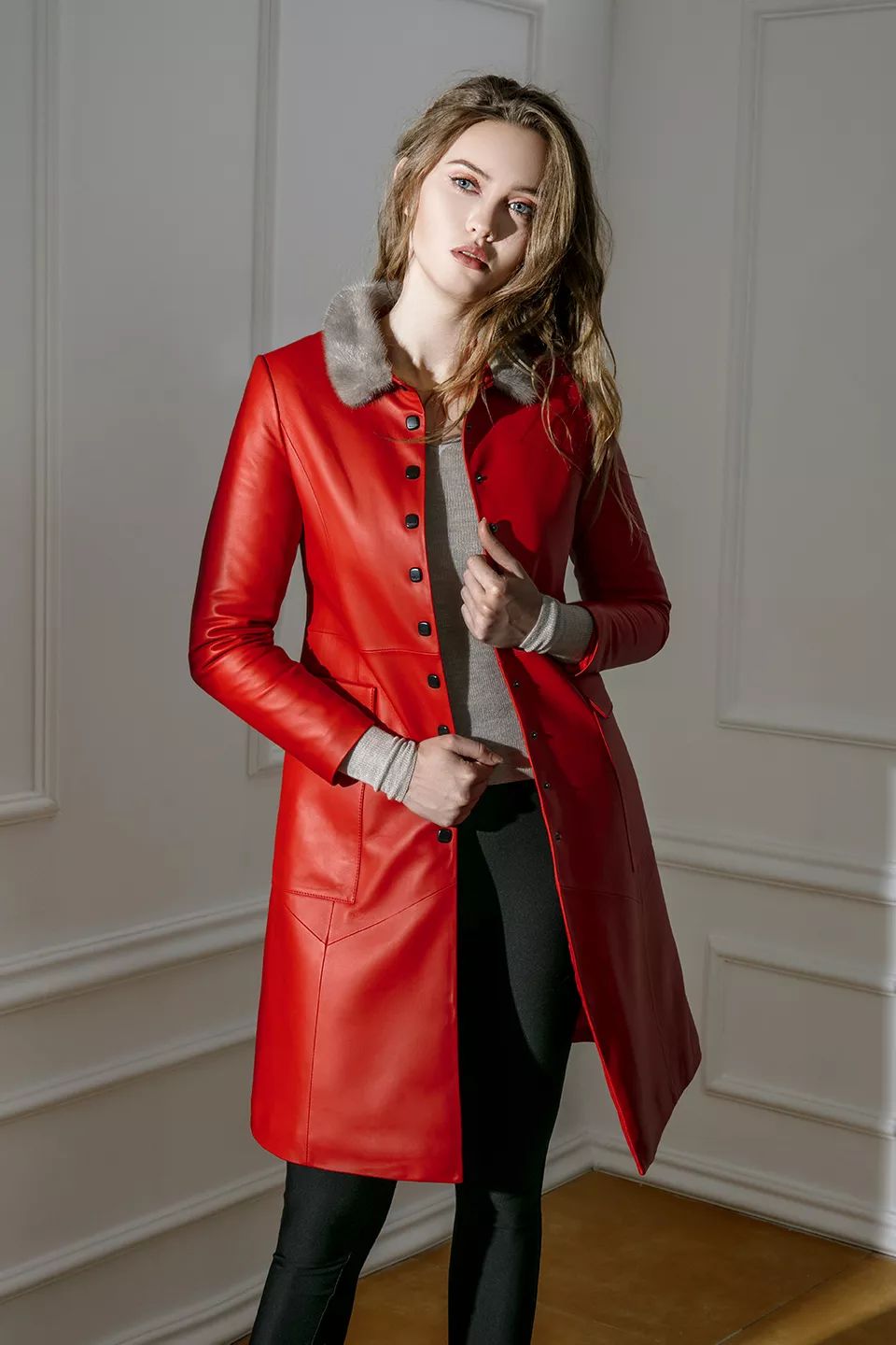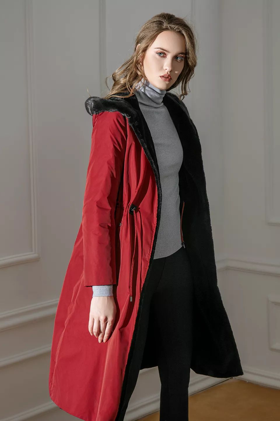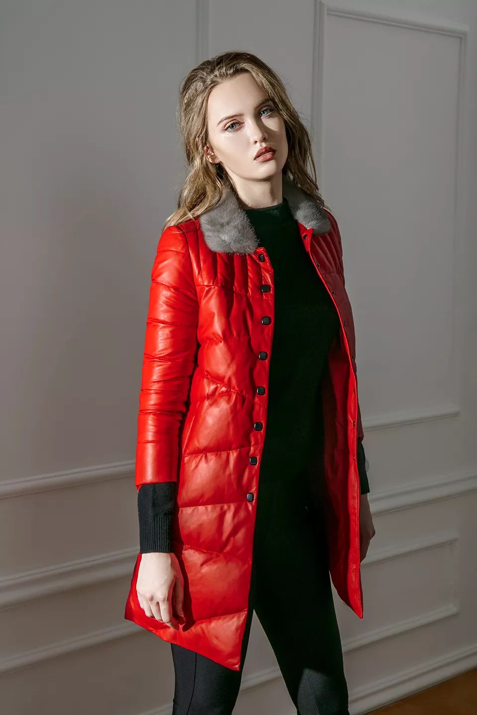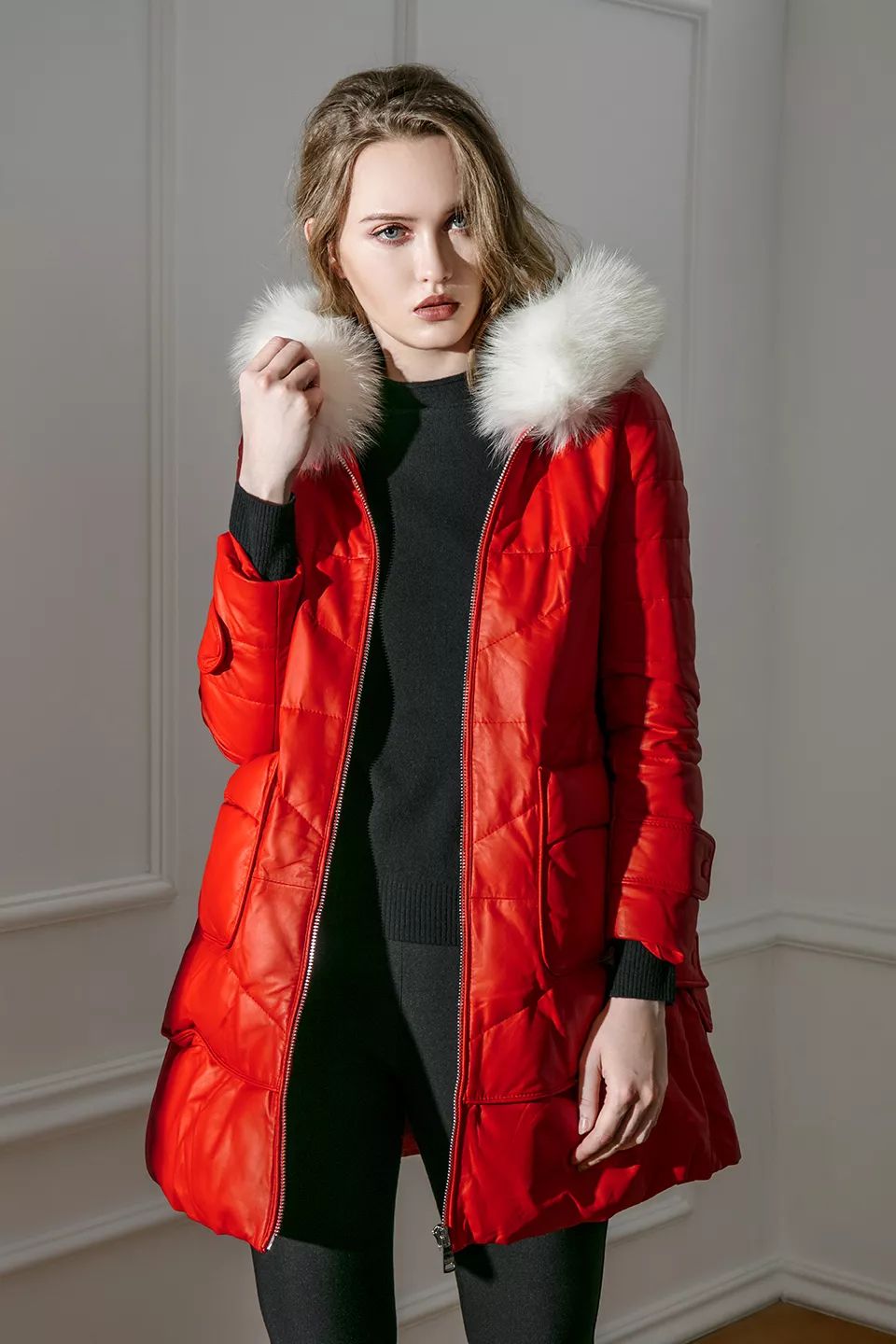 妖娆冷艳的红梨色或者再深一度的波尔多酒红色,都透露着微妙诱人的气息。皮羽绒搭配基本款色,在风情万种之余都能透露出一份优雅的气质,懒人必备的透气性小羊皮面料,真的是让人爱不释手。
