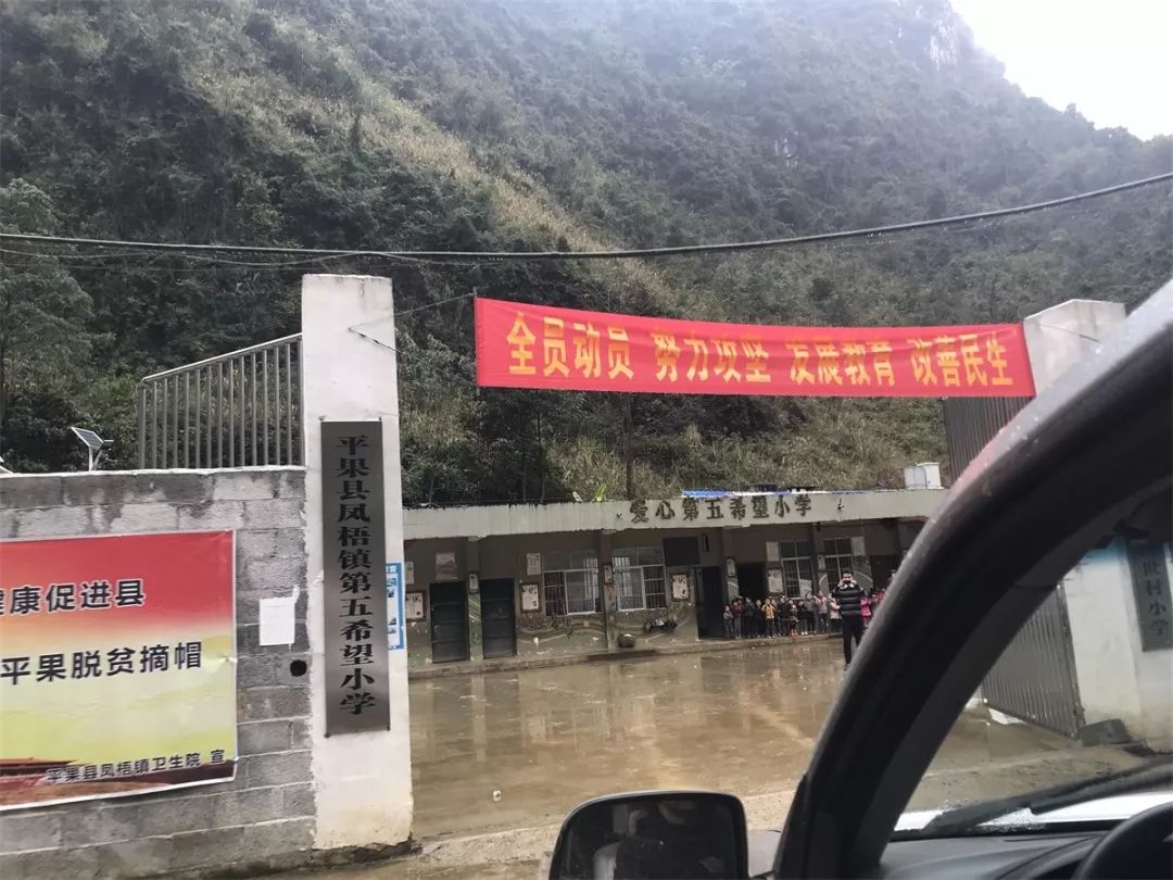 直到我们最终确定到一个地方,是济世村的一个村级中心教学点——平果县凤梧镇济世村小学(爱心第五希望小学),全校现有学生87人(全是走读学生),其中双亲孤儿2人,单亲孤儿17人。距镇府所在地15公里,由15个自然屯组成的山区学校,学生所在的自然屯离学校较远,大多数学生每天上下学都要走在近4个小时的大石山路之间。学校地住自然环境恶劣,生活条件艰苦,交通极为艰险,群众生活水平较差。了解完这些,我们大底知道自己该做些什么了!