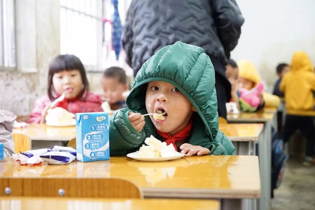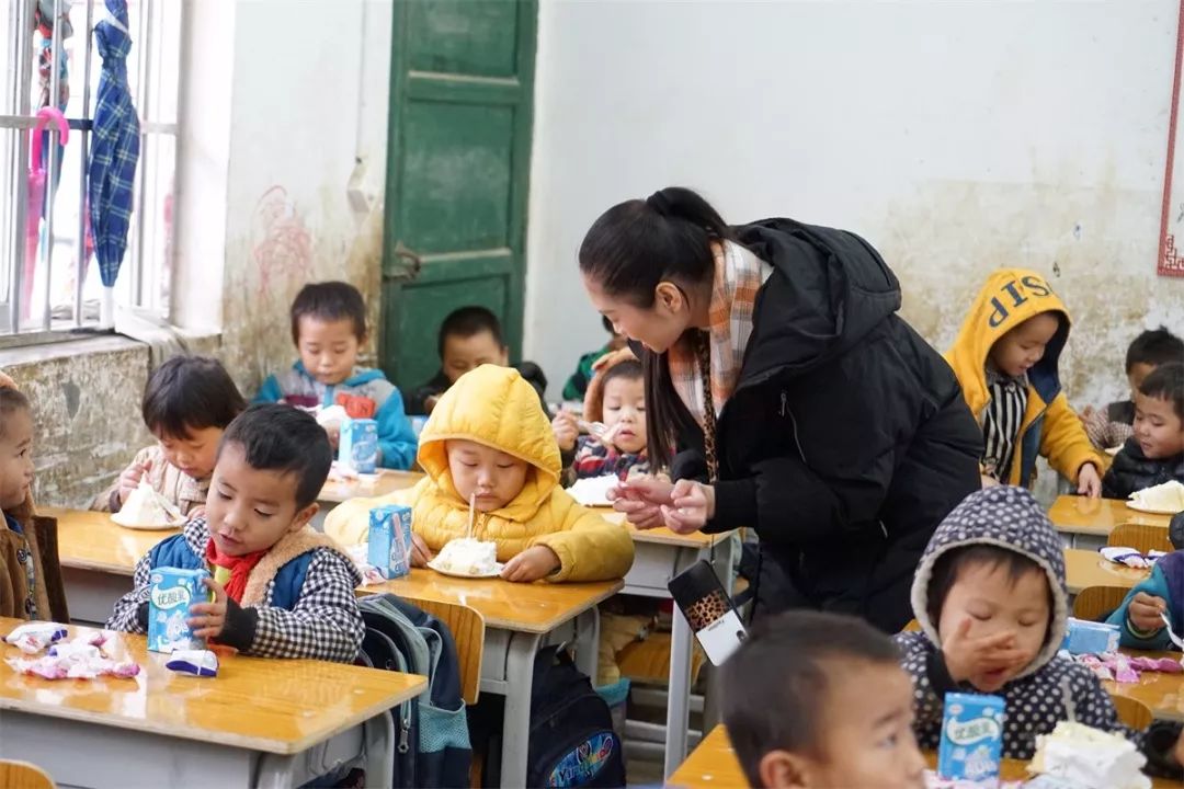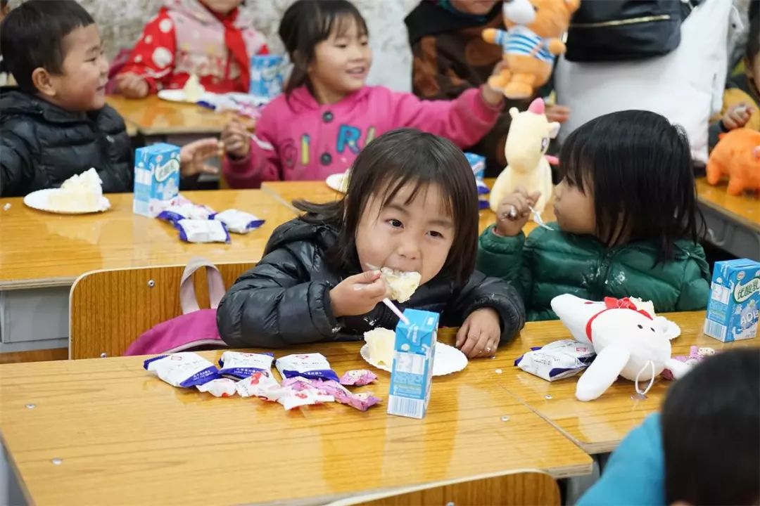 假如这些新桌椅不是爱心人士的资助,这些画面可能大家以为是80年代末90年代初,破旧的墙壁,小朋友嬉闹着玩具,大口享受这美味的蛋糕……