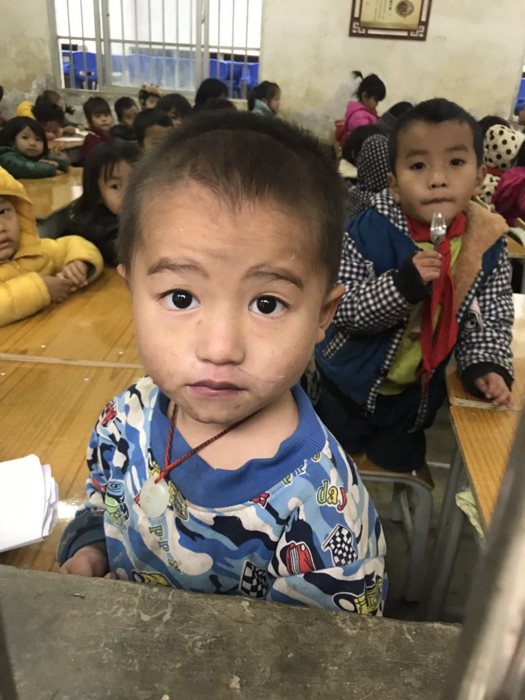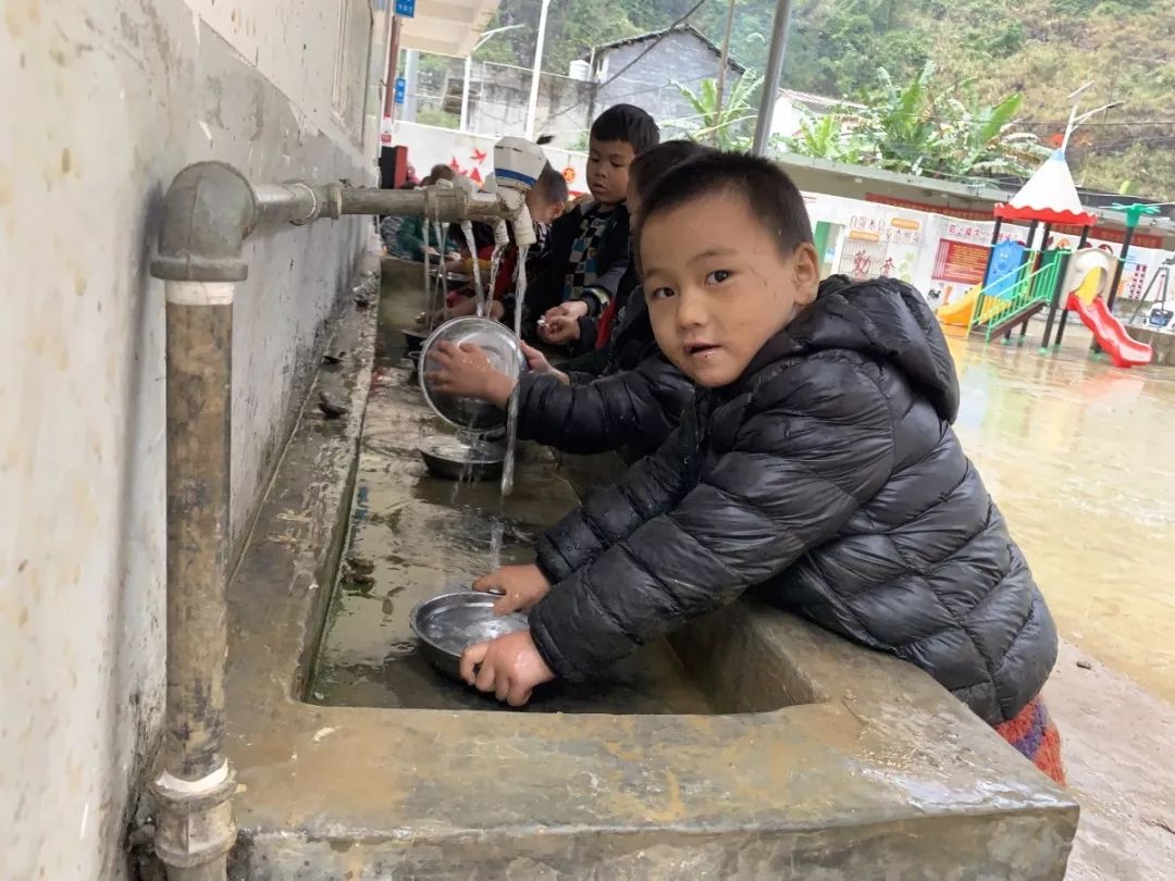 我们到的时候都穿着厚厚的羽绒服,这个时候也是广西天气最冷的时节,大人用冷水洗手都觉得刺骨的冰冷,这些小朋友已然习惯了吃完饭自己洗碗的习惯,其中年龄***的也只有7岁左右,最小的不到4周岁。