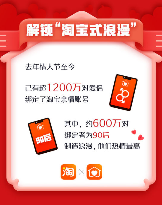 2月13日消息,根据淘宝今日公布的数据显示,从去年情人节至今,已有超1200万对爱侣绑定了淘宝亲情账号。