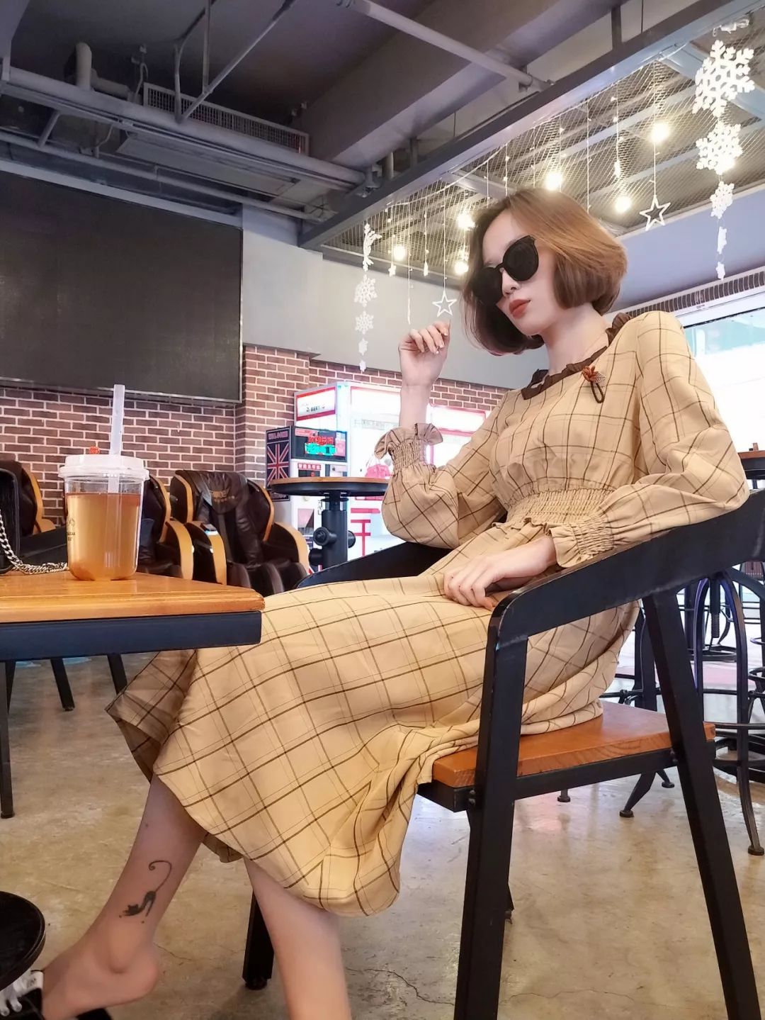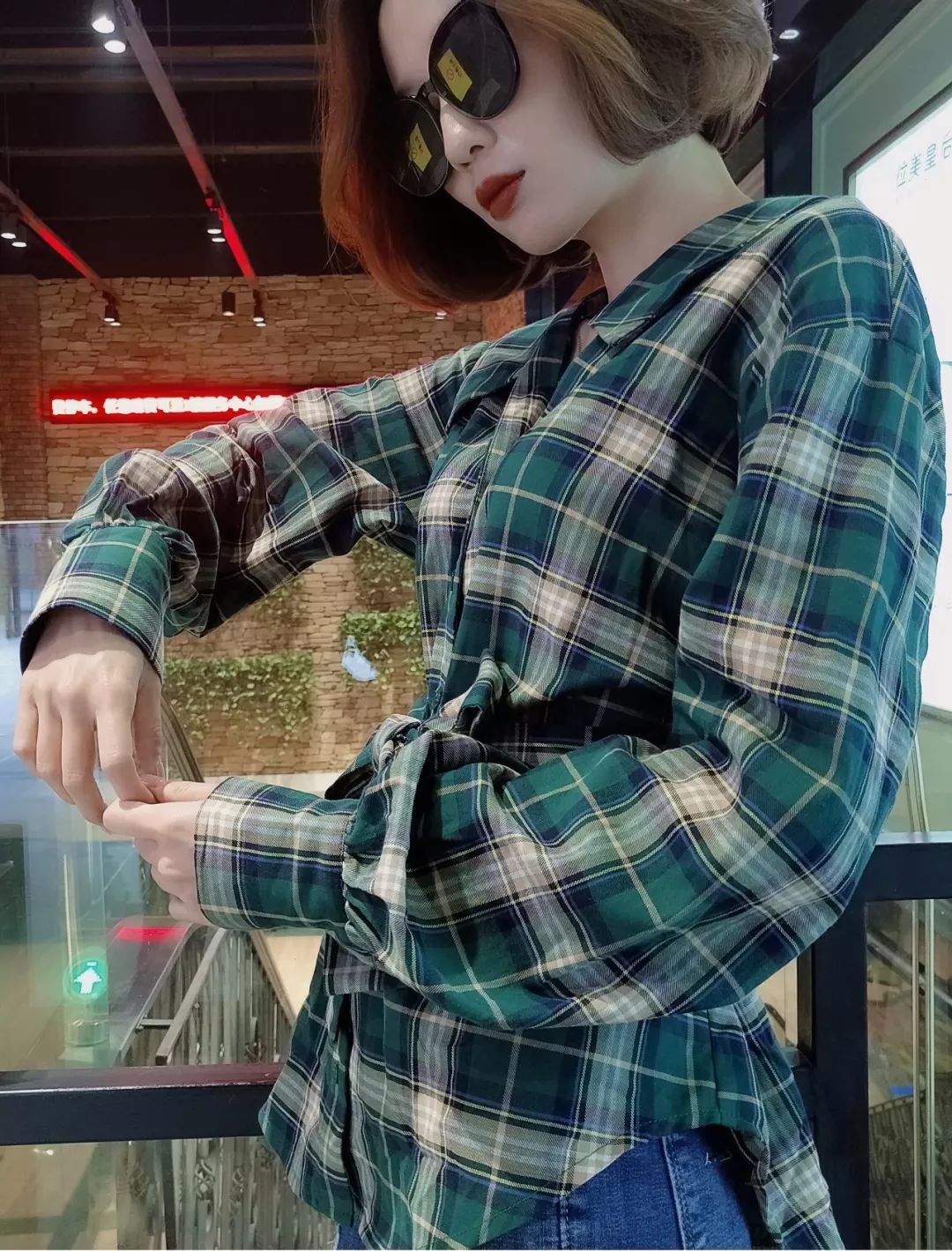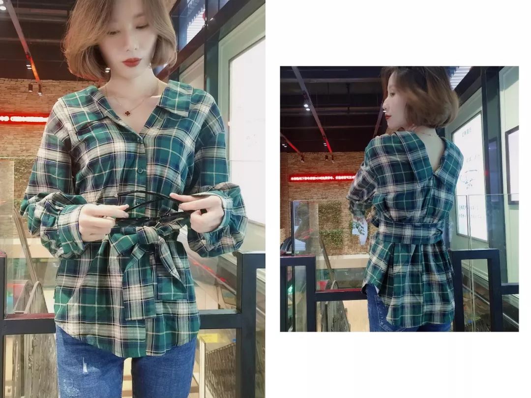 与***的格纹衬衫