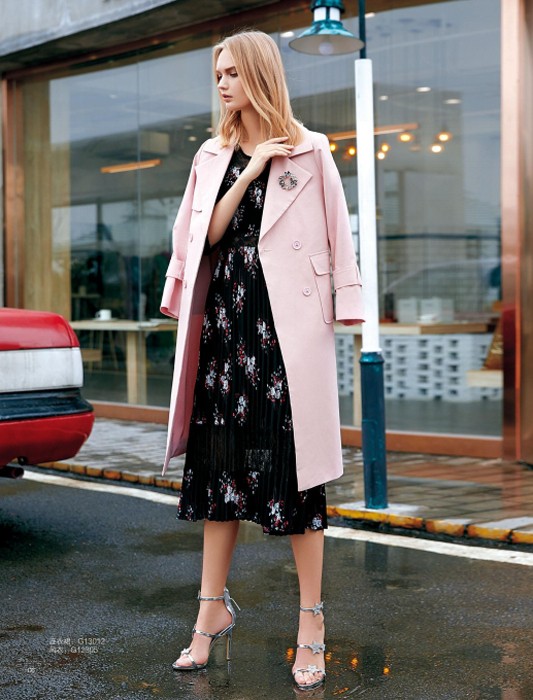 粉色的大衣搭配上连衣裙让穿搭多了优雅时尚的味道。粉色的大衣甜美又时尚,搭配上挺括的面料和翻领设计非常的适合上班穿着。 深色的碎花裙浪漫又甜美,这样的穿搭你喜欢吗?快来赫梵茜女装试一试吧。