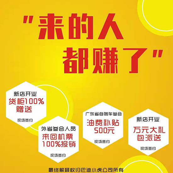 此次巴迪小虎“跨越,从心启航”2019秋冬新品发布会暨招商订货现场,不仅仅是一场时尚盛宴,更是充满着无限商机,此次盛会可以说是惊喜满满哦!现场签约的加盟商,新店开业货柜100%赠送、外省参会人员来回机票100%报销、广东省自驾车参会油费补贴500元、新店开业万元大礼品派送,而且还有高额返利,现金支持双倍利润投资回报,绝对是你不可错过的机遇哦!
