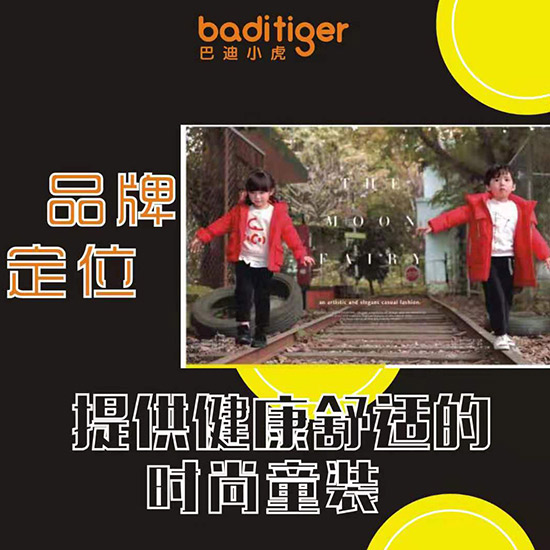 跨越,从心开始!巴迪小虎品牌童装,坚持以客户为中心,以人为本,狠抓质量,稳扎稳打,结合创新理念,对设计研发领域持续投入,以客户需求为导向,紧跟市场潮流进行创新,使公司始终处于行业前沿,引领行业的发展。如今,巴迪小虎分公司已遍布全国200多个地级市,与此同时,巴迪小虎集团各子项目也将逐步实现全国加盟连锁!