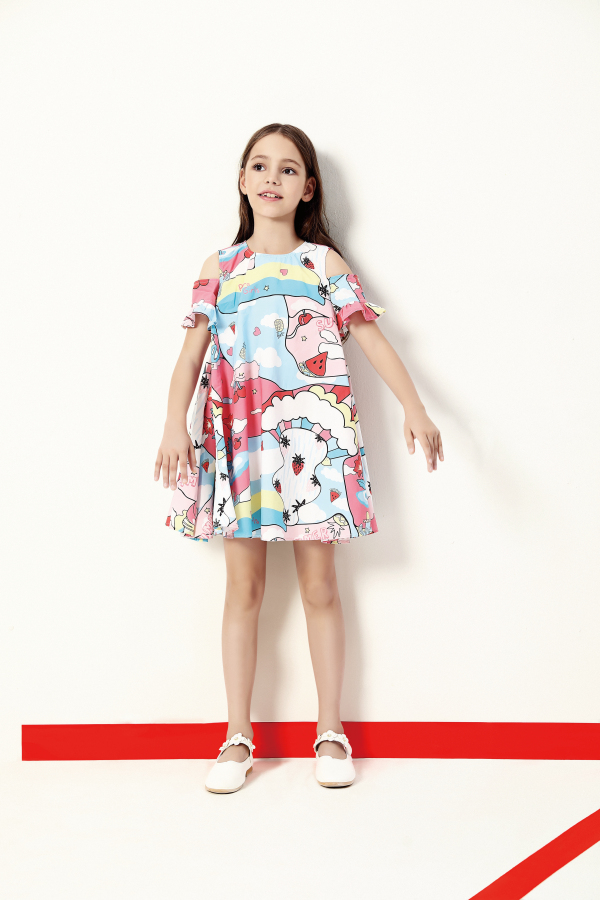 充满童真的连衣裙在夏日里也是孩子们的必备选择。巴柯拉这一件连衣裙采用宽松的版型设计让穿搭更清爽。多种色彩的漫画印花让孩子犹如身处童话中的王国,自由又舒适。
