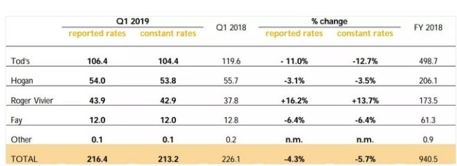 Tod s集团在本土市场意大利的销售额同比下滑9.4%至6360万欧元;