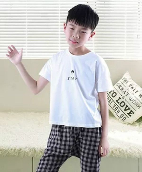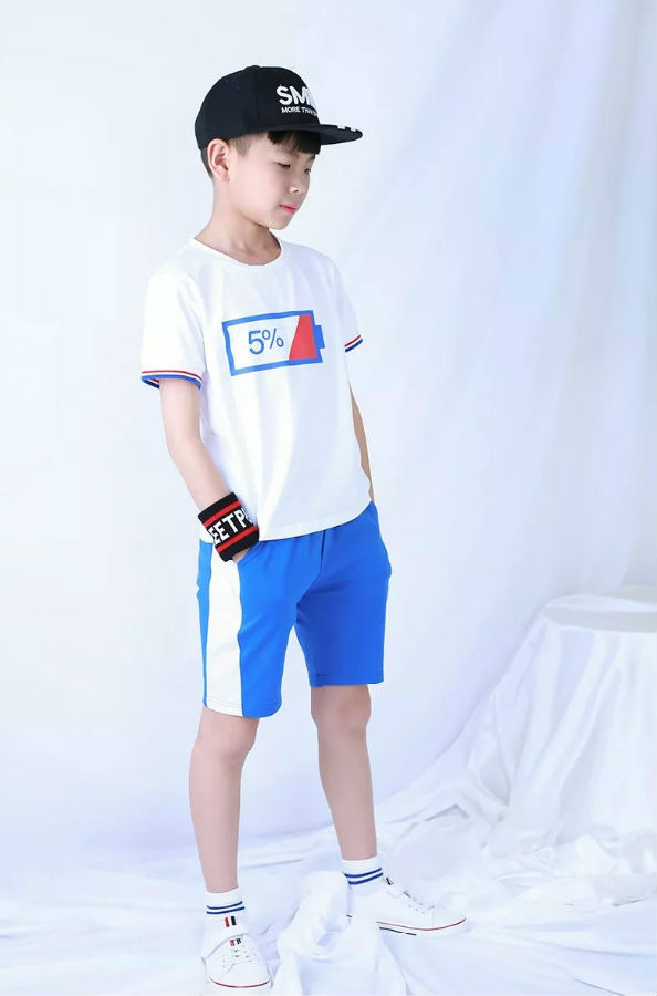 黑色印花背心,搭配双边袋白色休闲中裤,经典黑白搭配,潮酷Boy推荐款。
