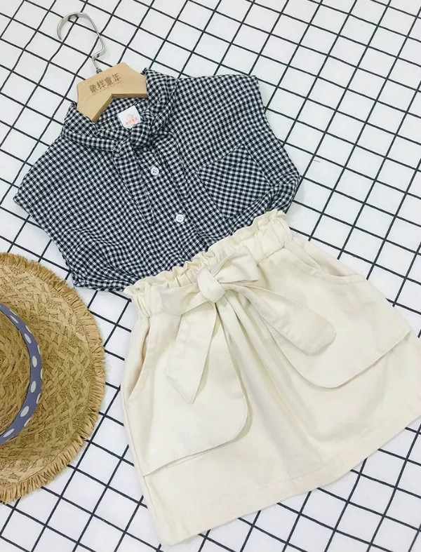 格子衫 X 米白短裙,欧美时尚简约风。