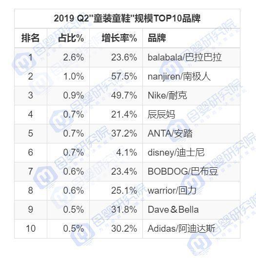 根据母婴研究院数据显示:在2019年Q2规模TOP10品牌中,增长速度都有所放缓。在2018年增长率接近90%的南极人在2019年Q2也降到了57.5%,但是整体来看,各大品牌都处在一个平稳上升的状态。